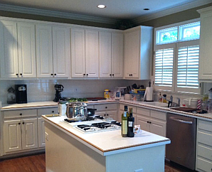 Here we expanded a kitchen that was getting a little outdated. If you haven't already, hover over the image to compare the before picture with the after picture. We gave them the updated grand kitchen they were looking for, by expanding the room, adding a focal point kitchen island and high end appliances. We moved the kitchen island stove top to the back wall and created a unique tile backsplash to keep it interesting.